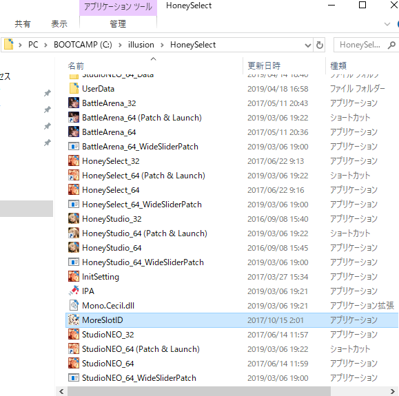 上のサイトからMoreSlotIDのアプリケーションファイルをダウンロードし解凍。